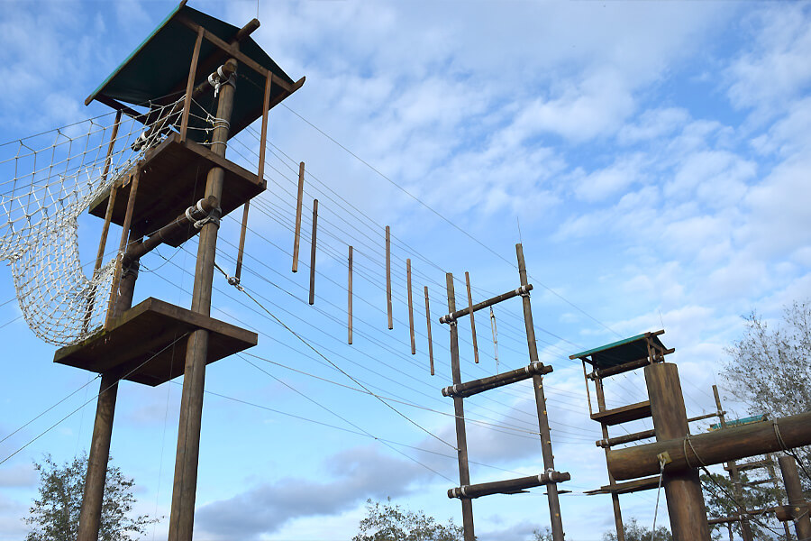The Odyssey is a static belay course that is available for participants 12 and older. This experience enables small groups to tackle challenging elements while safely elevated off the ground.