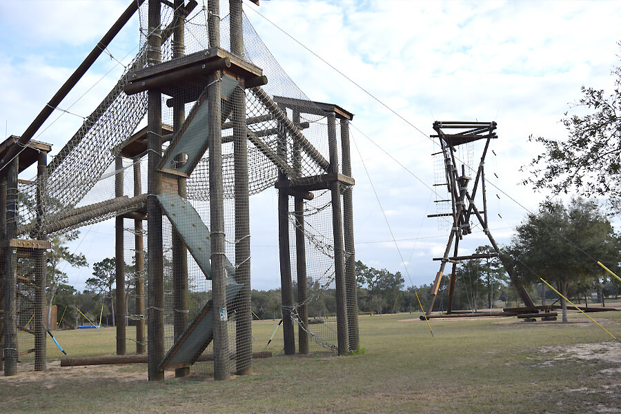 The group leader will decide whether the Zip Line or the Swing will serve as the high element for the session. Participants will spend the first half of their time block engaging in team-building activities designed to align with the group's goals. During the second half, groups will rotate through the low elements and the selected high element, maximizing their experience.
